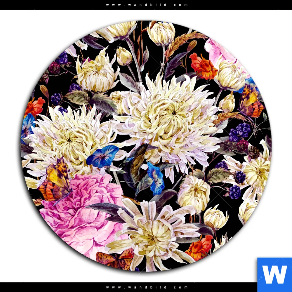 Aluminiumbild gebürstet | Aquarell von wilden Blumen | Rund