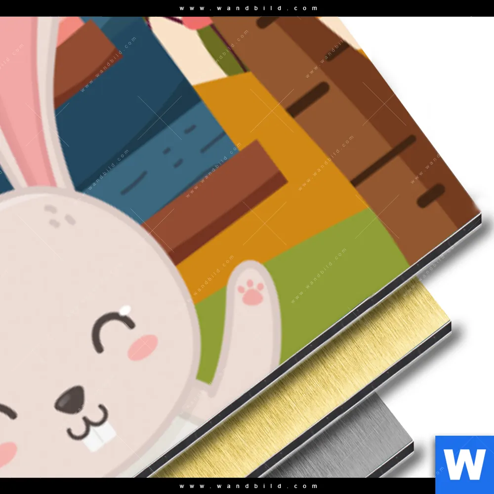 Aluminiumbild gebürstet | Bär & Häschen | Panorama