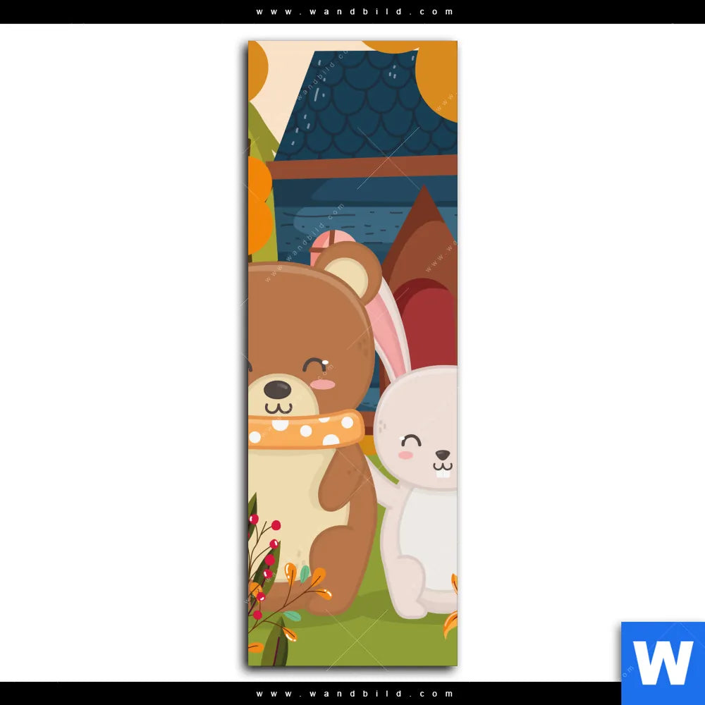 Aluminiumbild gebürstet | Bär & Häschen | Schmal