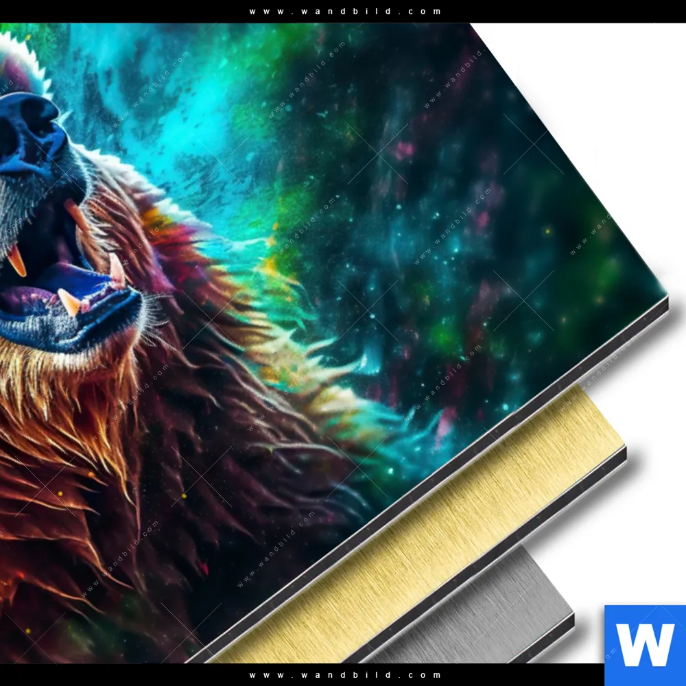 Aluminiumbild gebürstet | Bär in Neonfarben | Querformat