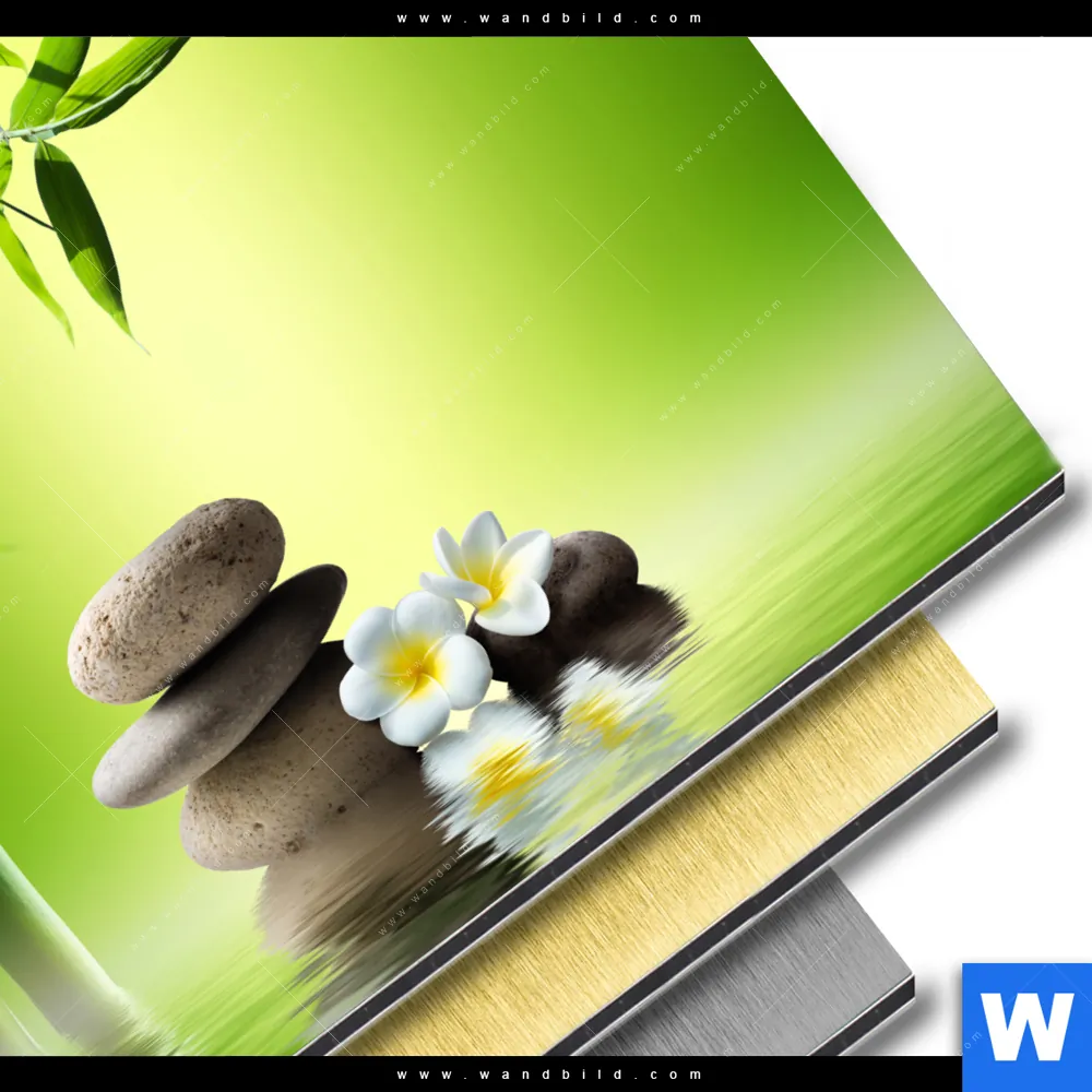Aluminiumbild gebürstet | Bambus & Steine | Quadrat