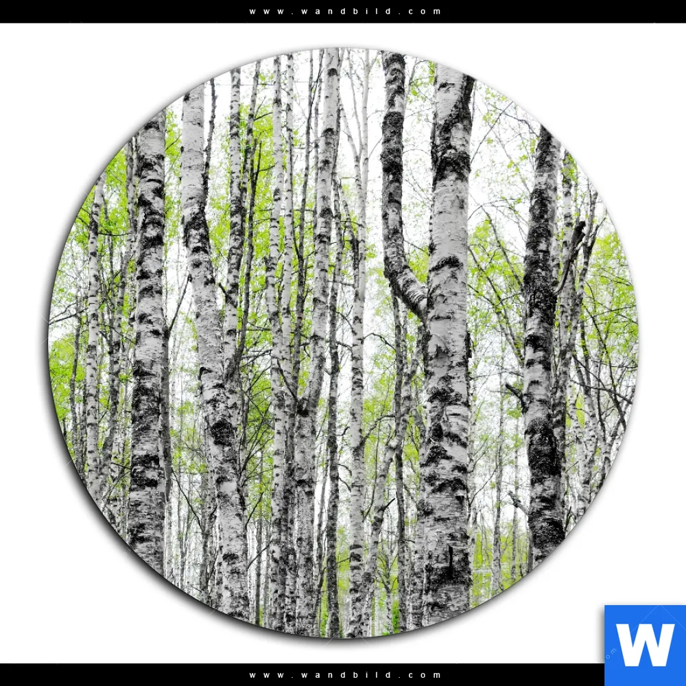 Aluminiumbild gebürstet | Birkenwald | Rund