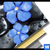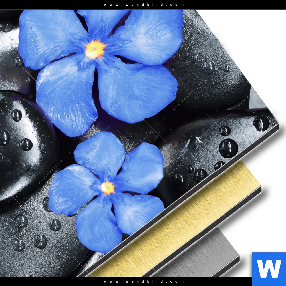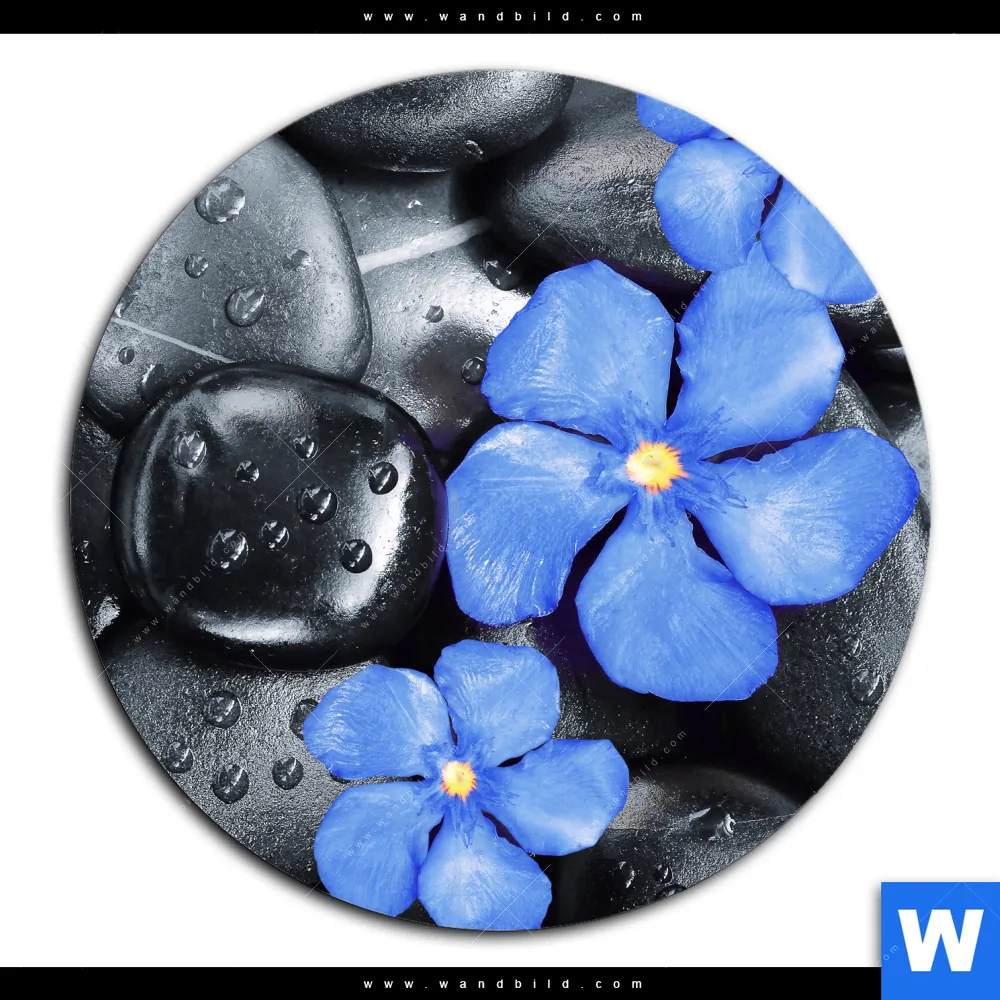 Aluminiumbild gebürstet | Blaue Blume & Graue Steine | Rund