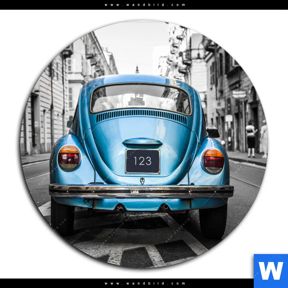 Aluminiumbild gebürstet | Blauer Oldtimer | Rund
