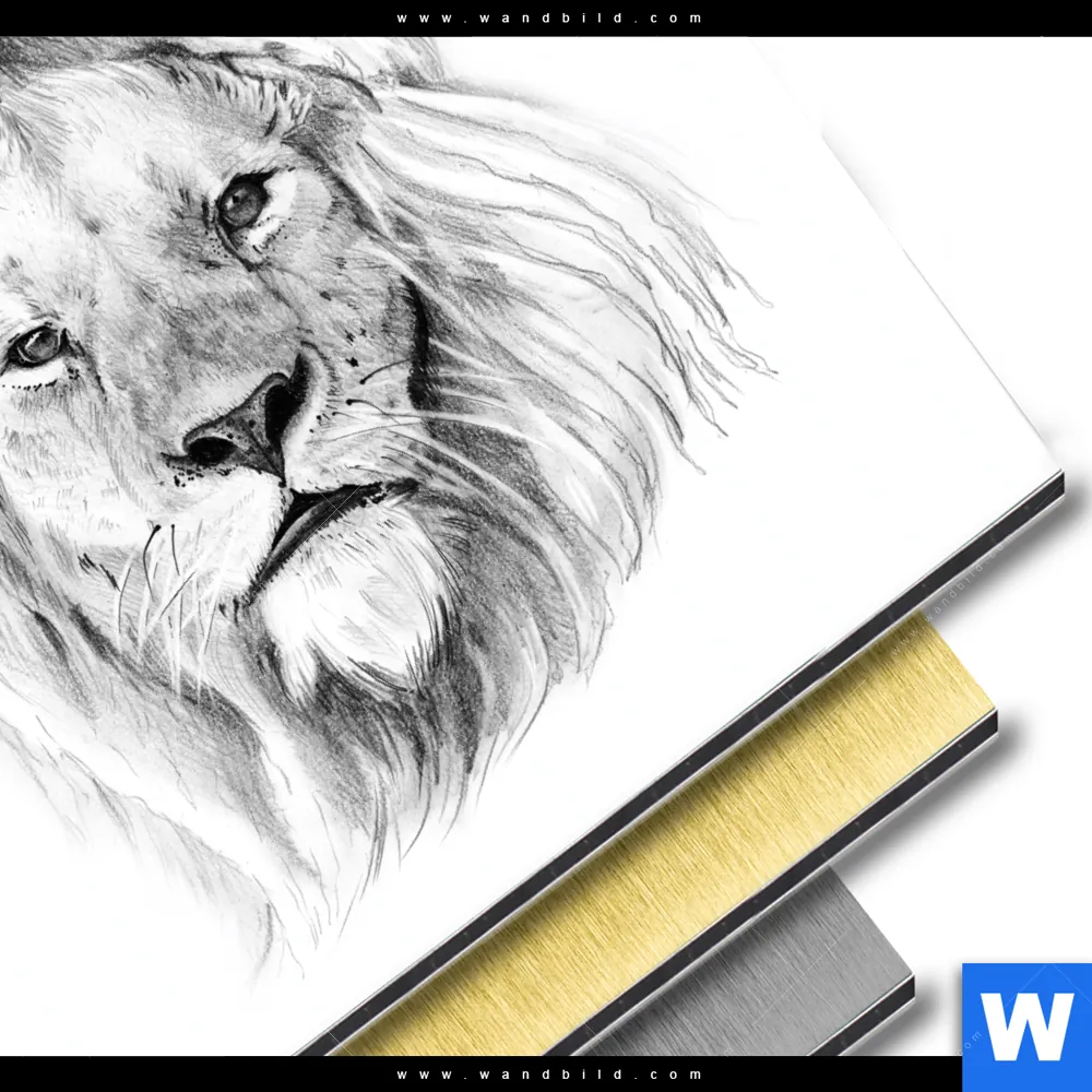 Aluminiumbild gebürstet | Bleistiftzeichnung Löwe | Quadrat
