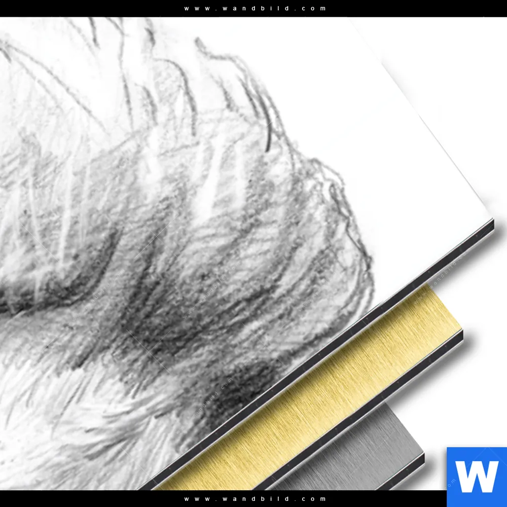 Aluminiumbild gebürstet | Bleistiftzeichnung Löwe | Schmal