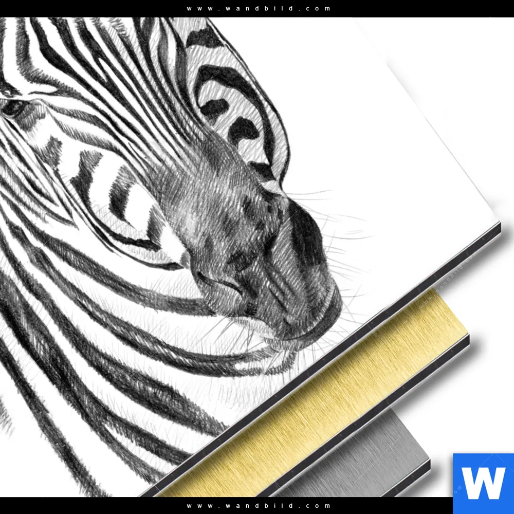 Aluminiumbild gebürstet | Bleistiftzeichnung Zebra | Rund