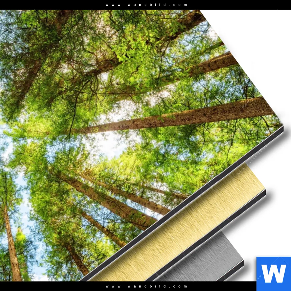 Landschaften, Wald - Bäume Aluminiumbild mit metallischem Effekt inkl. vormontiertem Rückrahmen