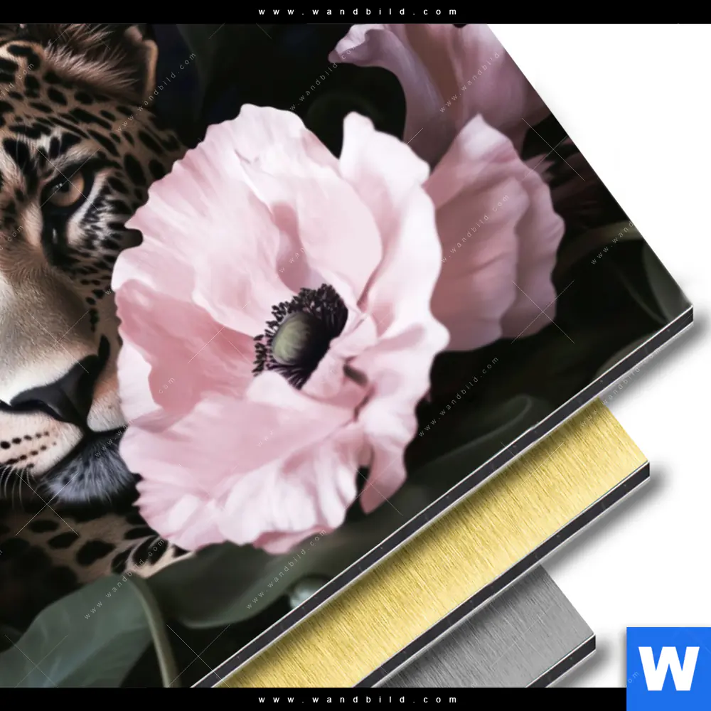 Aluminiumbild gebürstet | Blumen und Raubkatzenmagie | Querformat