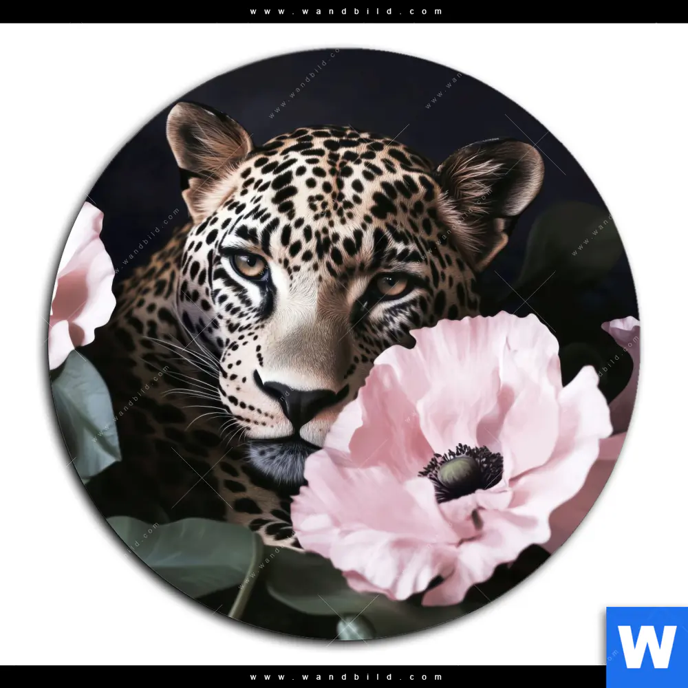Aluminiumbild gebürstet | Blumen und Raubkatzenmagie | Rund