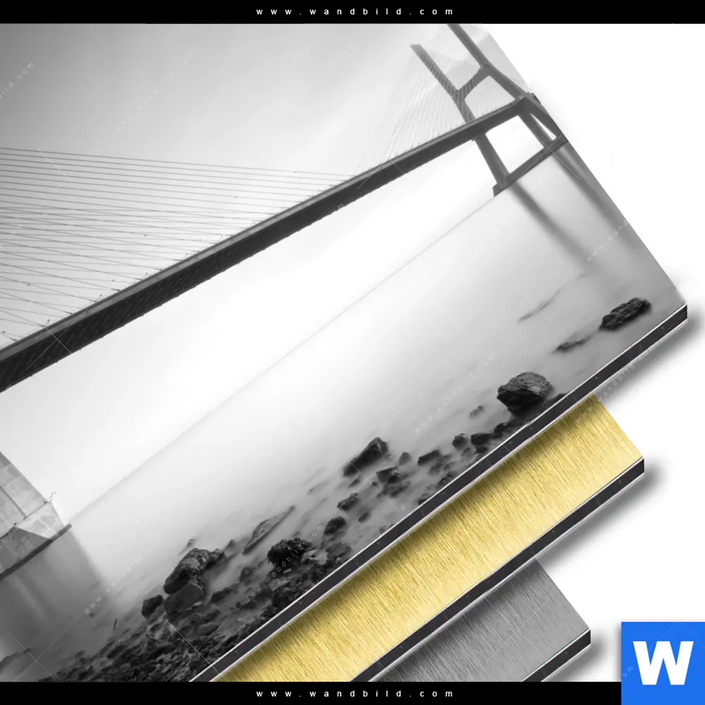 Aluminiumbild gebürstet | Brücke am weiten Meer | Quadrat