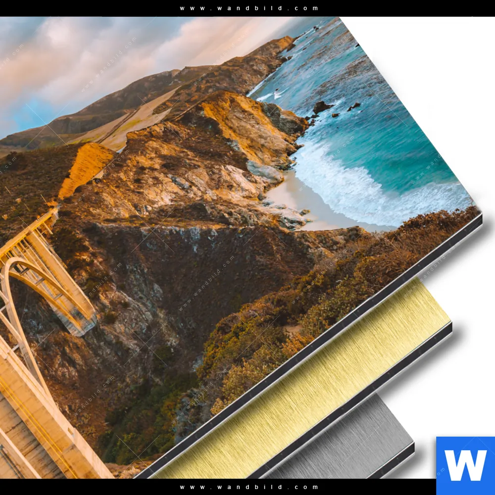 Landschaften Aluminiumbild mit metallischem Effekt inkl. vormontiertem Rückrahmen