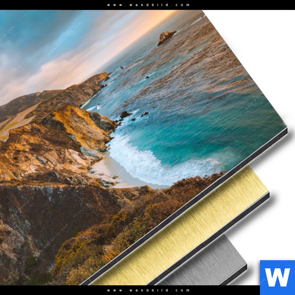 Landschaften Aluminiumbild mit metallischem Effekt inkl. vormontiertem Rückrahmen