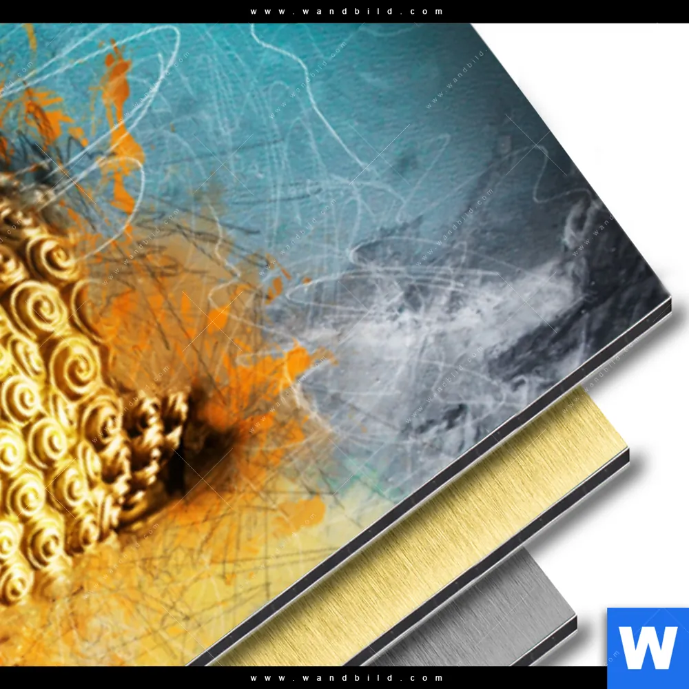 Aluminiumbild gebürstet | Buddha Gold & Türkis | Schmal