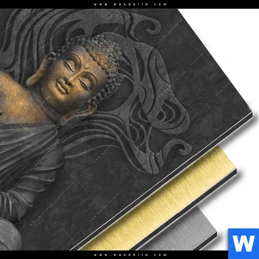 Buddha - Feng Shui Aluminiumbild mit metallischem Effekt inkl. vormontiertem Rückrahmen