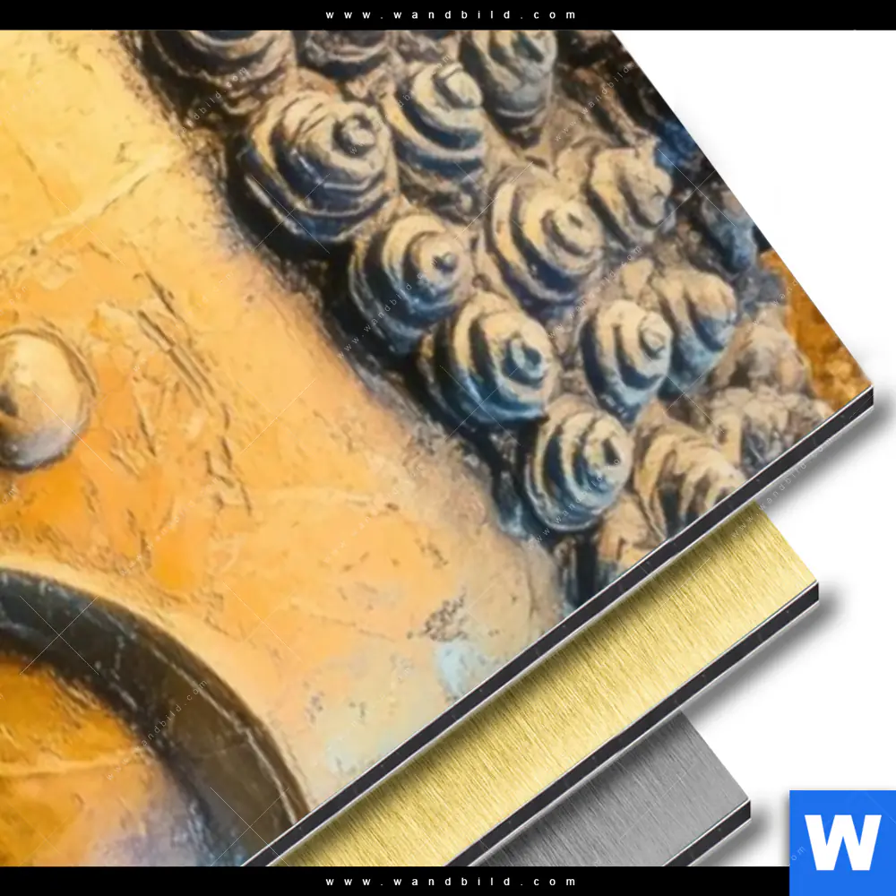 Buddha - Feng Shui Aluminiumbild mit metallischem Effekt inkl. vormontiertem Rückrahmen