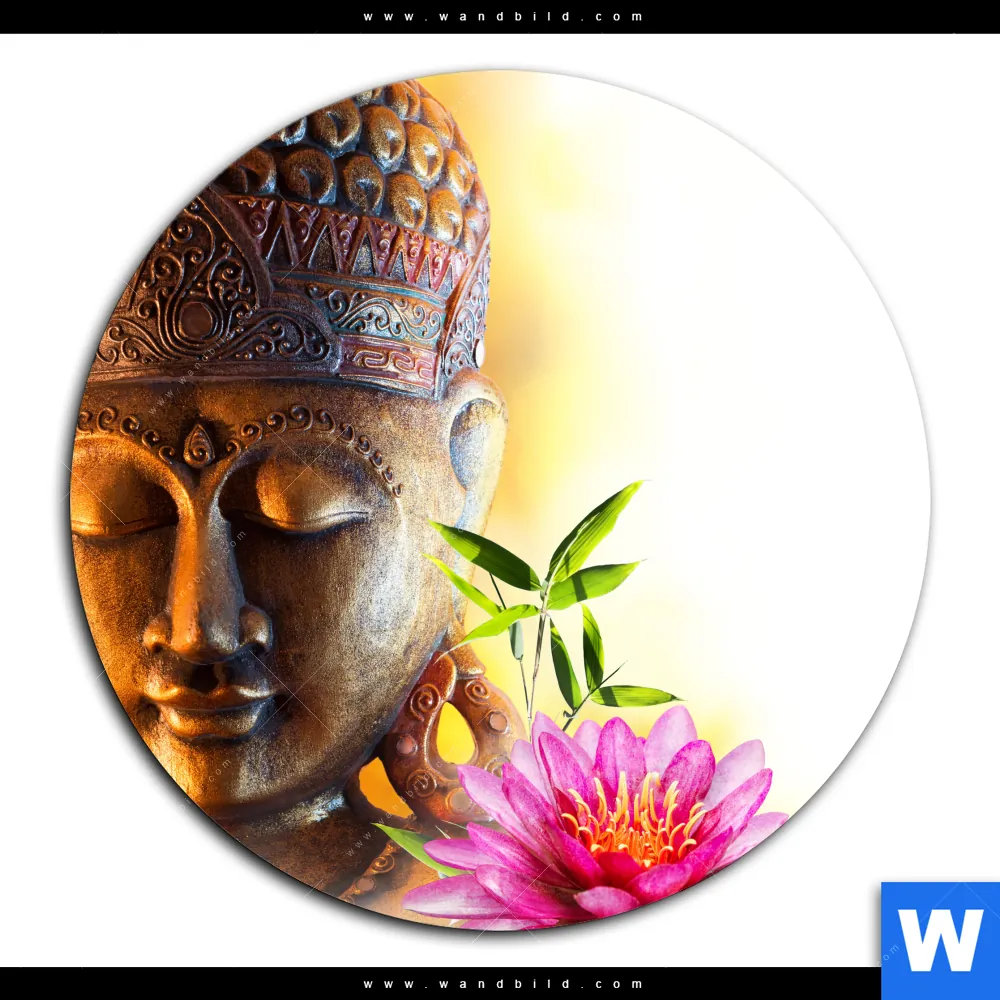 Aluminiumbild gebürstet | Buddha Kopf & Seerose | Rund