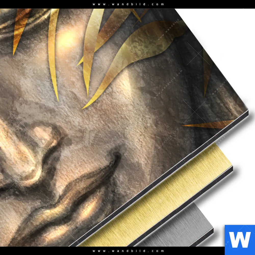 Aluminiumbild gebürstet | Buddha Silber & Gold | Querformat