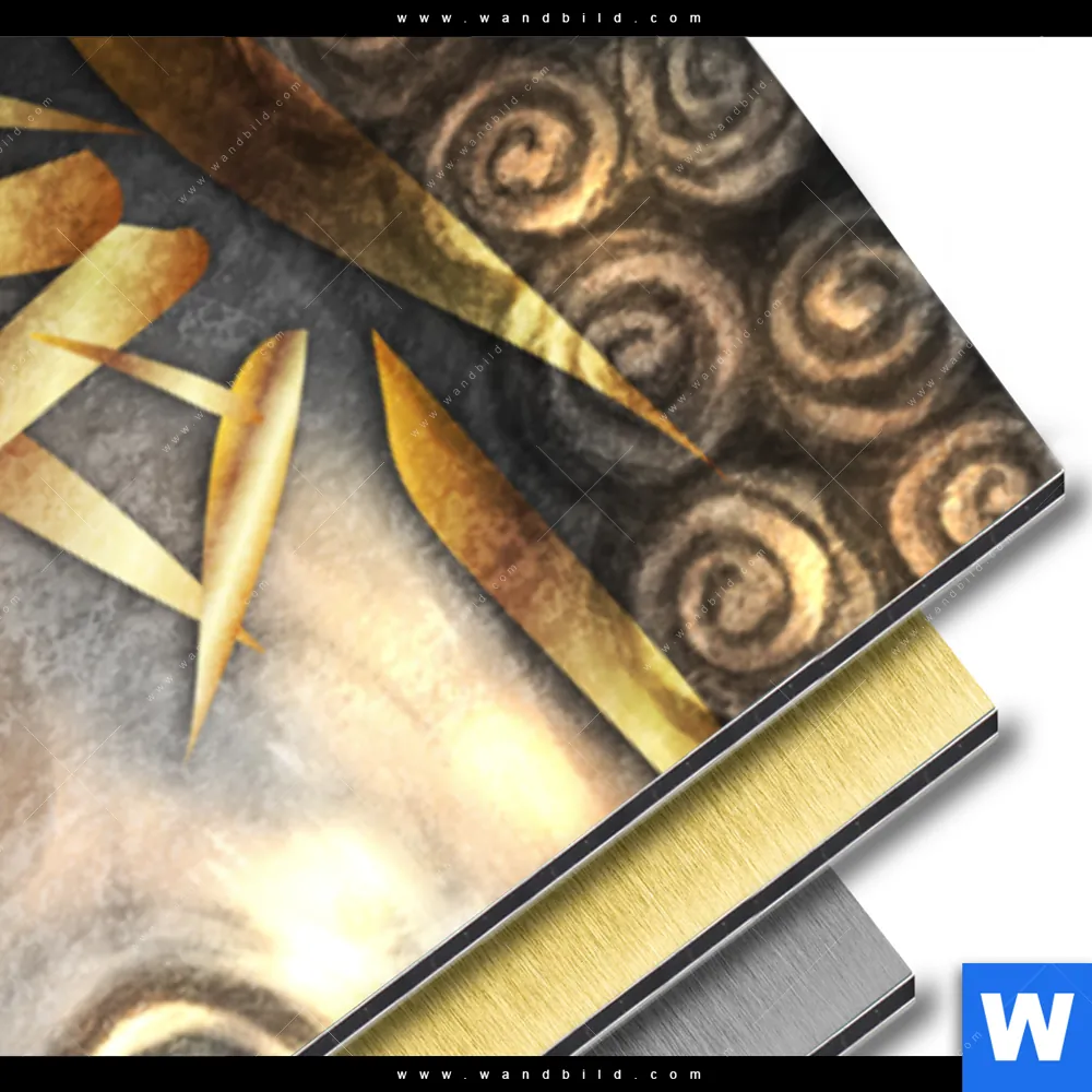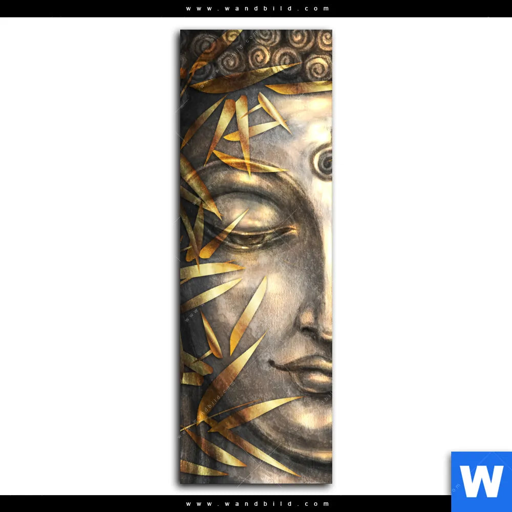 Aluminiumbild gebürstet | Buddha Silber & Gold | Schmal