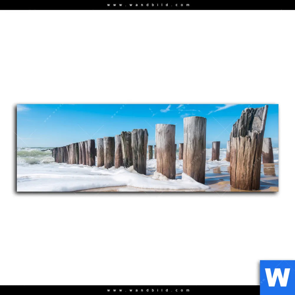 Aluminiumbild gebürstet | Buhnen in Wellen am Strand | Panorama