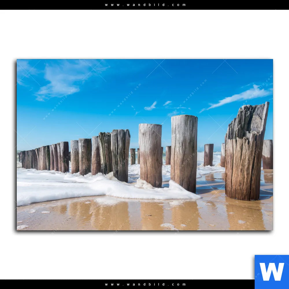 Aluminiumbild gebürstet | Buhnen in Wellen am Strand | Querformat