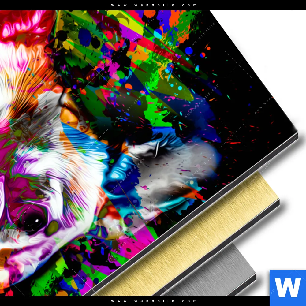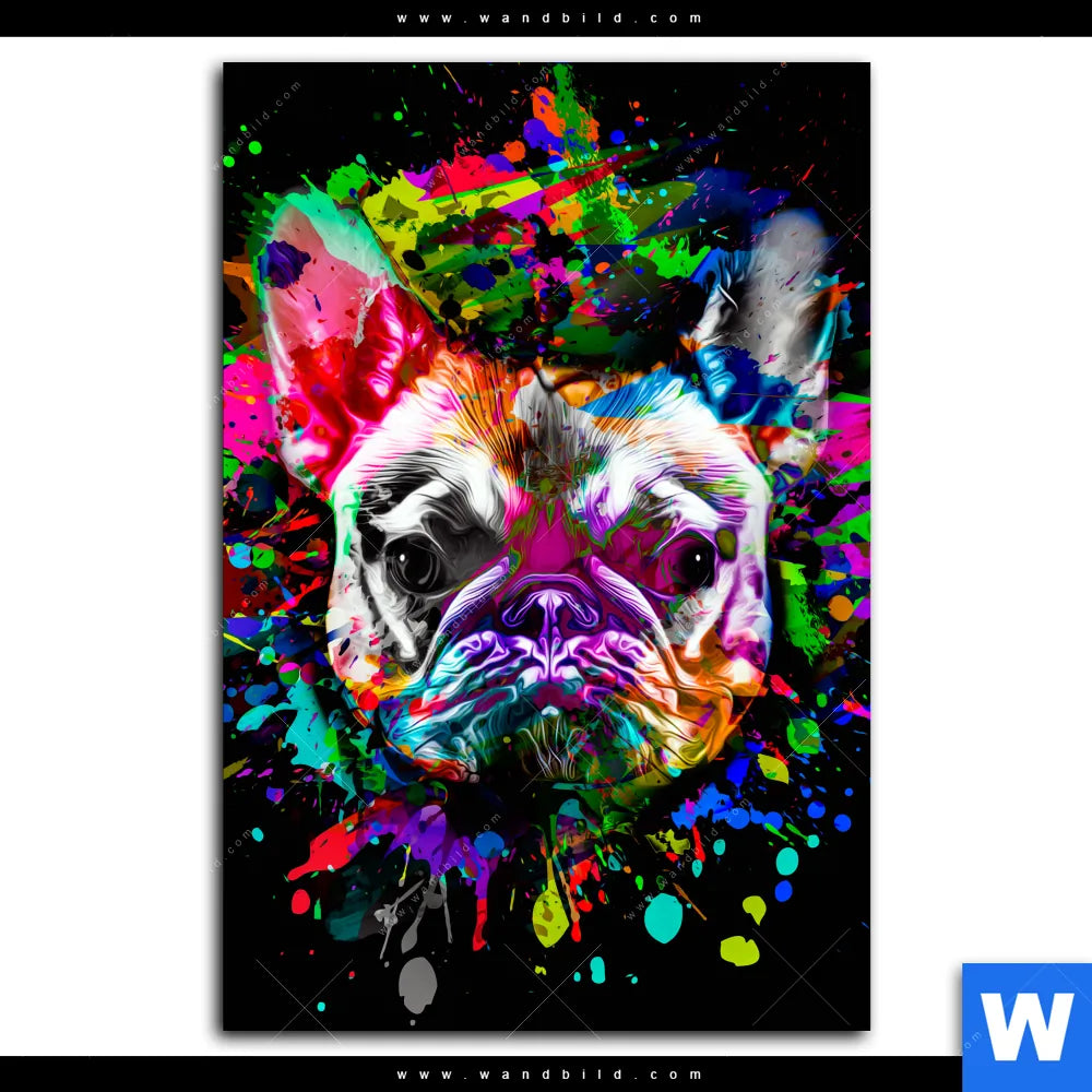 Aluminiumbild gebürstet | Bunte Bulldogge Schwarz | Hochformat
