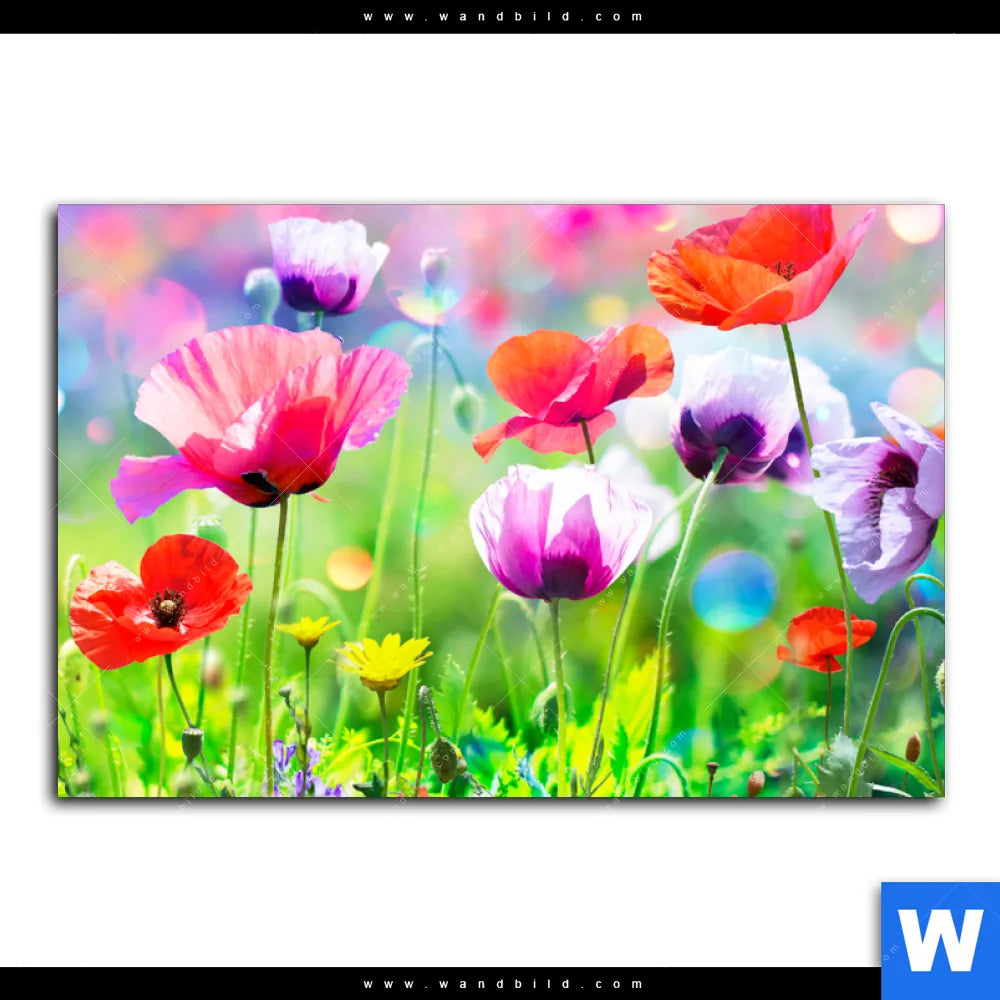 Aluminiumbild gebürstet | Bunte Mohnblumen | Querformat
