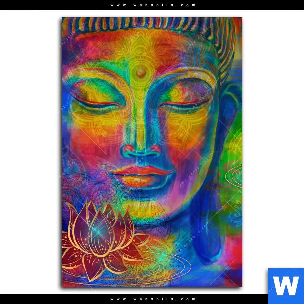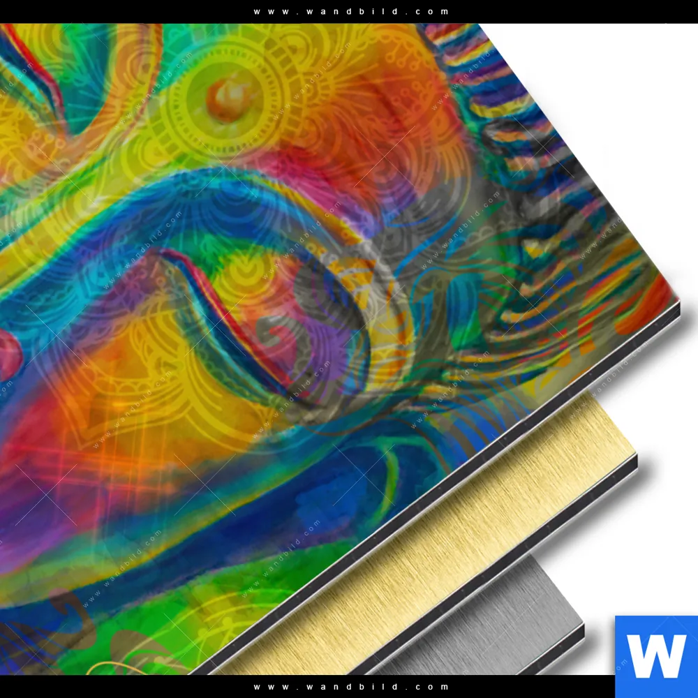 Aluminiumbild gebürstet | Bunter Buddha No.2 | Hochformat