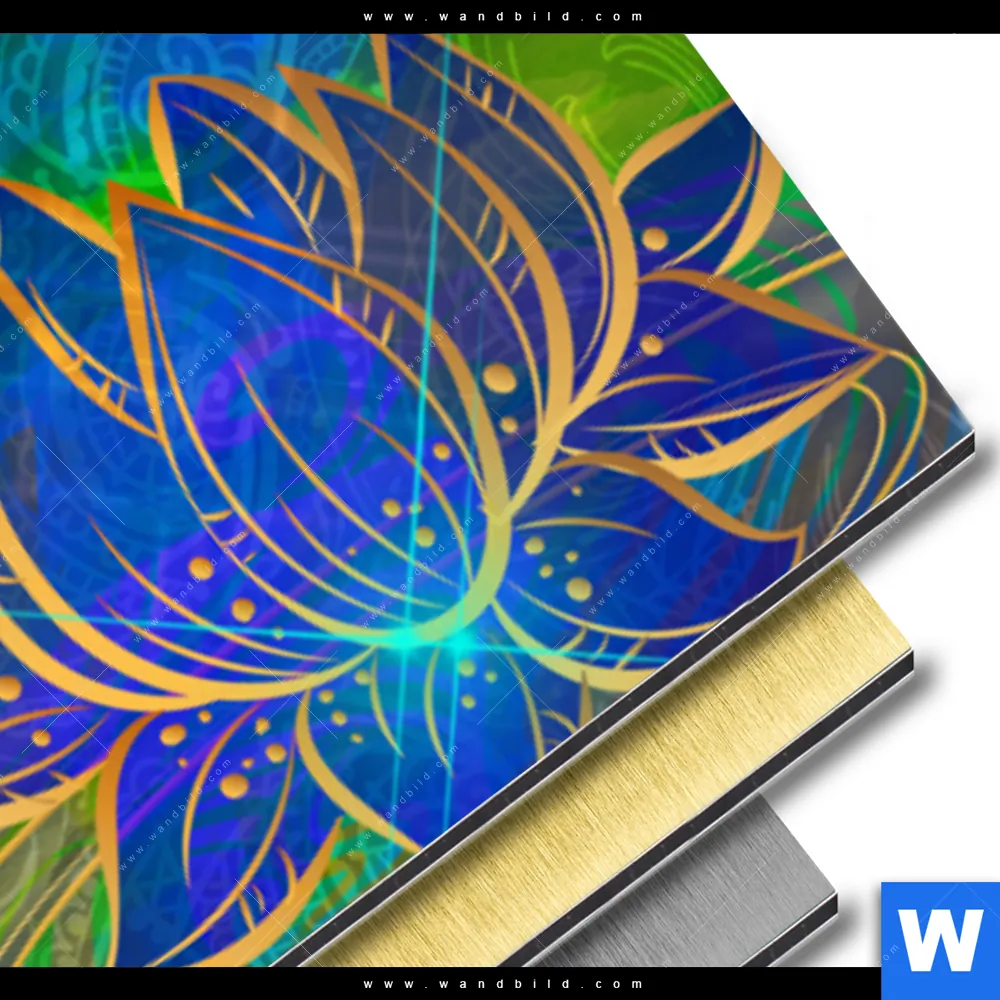 Buddha - Feng Shui Aluminiumbild mit metallischem Effekt inkl. vormontiertem Rückrahmen