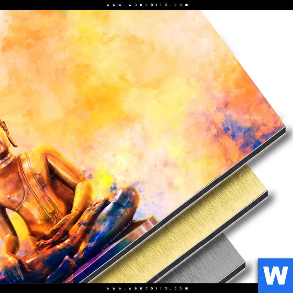 Buddha - Feng Shui Aluminiumbild mit metallischem Effekt inkl. vormontiertem Rückrahmen