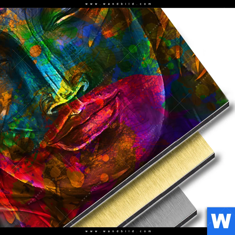 Aluminiumbild gebürstet | Bunter Buddha | Quadrat