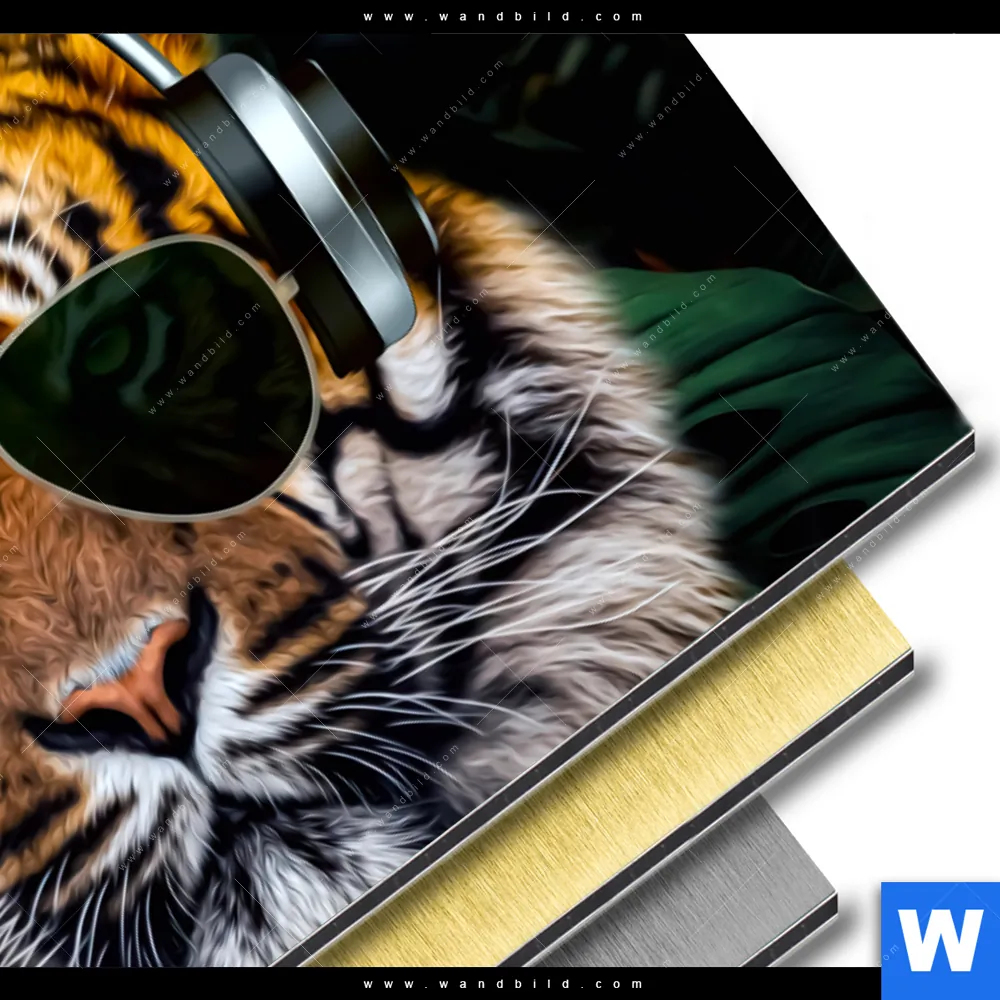 Aluminiumbild gebürstet | Cooler Tiger | Querformat