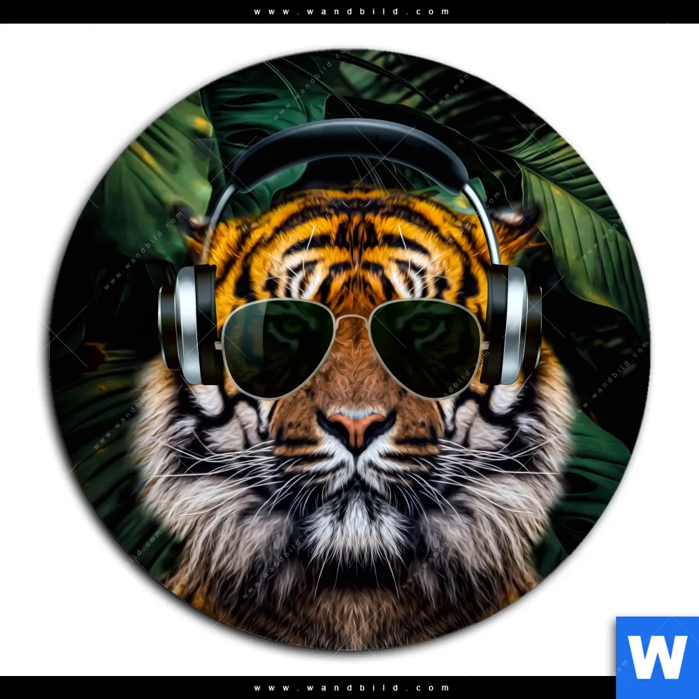 Aluminiumbild gebürstet | Cooler Tiger | Rund
