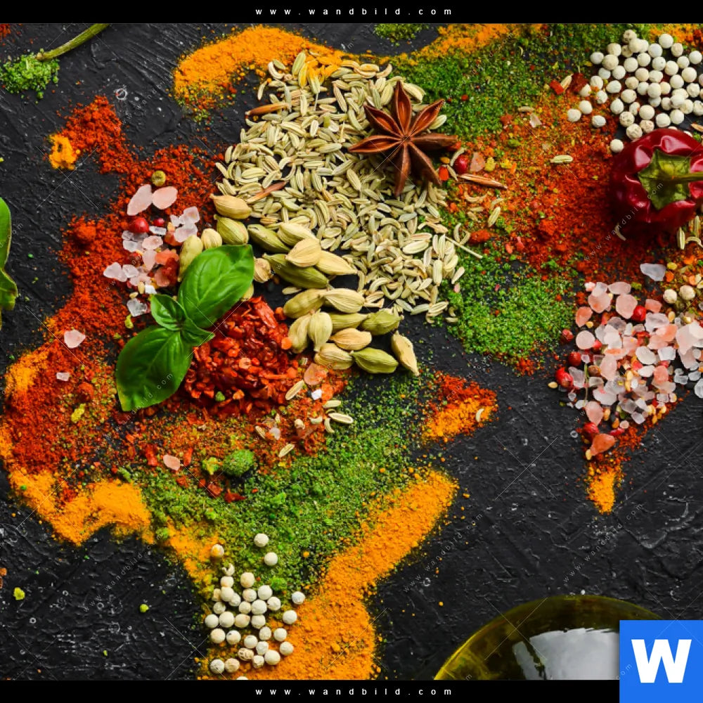 Aluminiumbild gebürstet | Die Weltkarte der Gewürze | Querformat