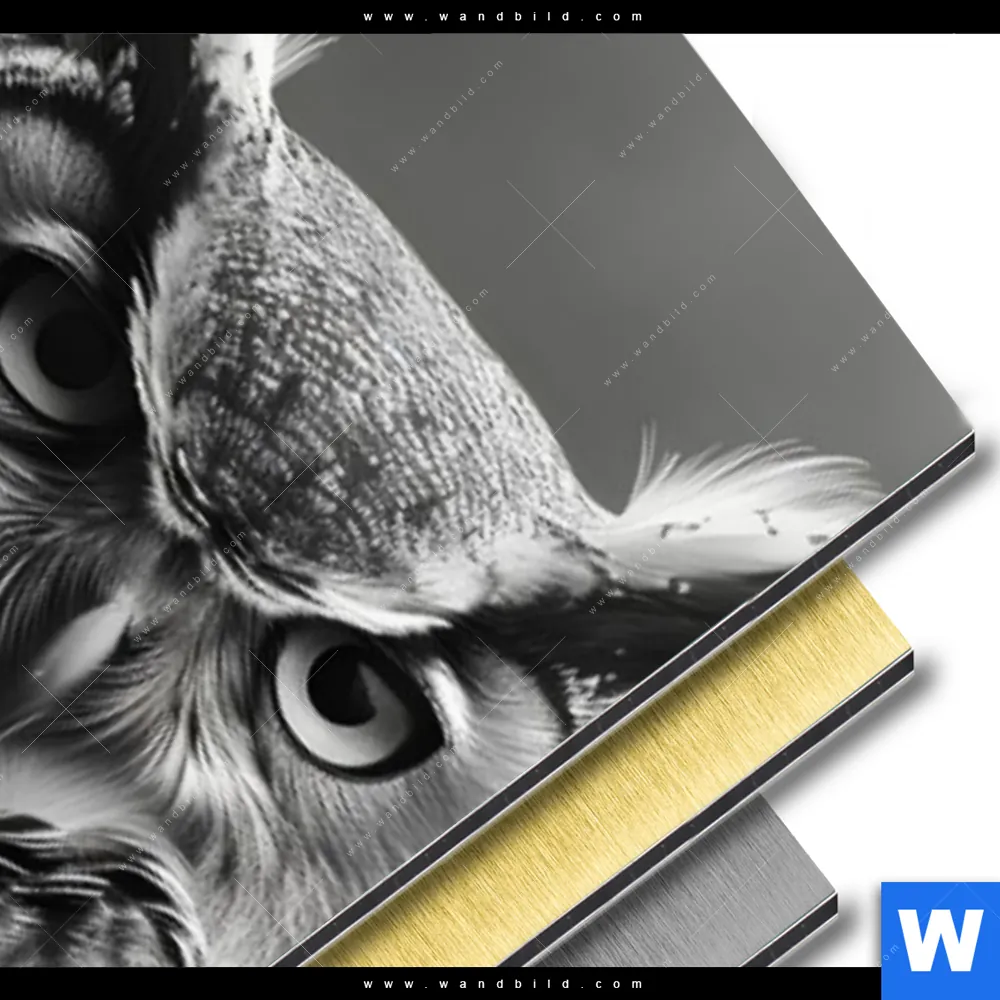 Aluminiumbild gebürstet | Düstere Eleganz der Eule | Schmal