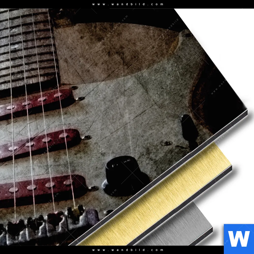 Aluminiumbild gebürstet | E-Gitarre Retro Look | Rund