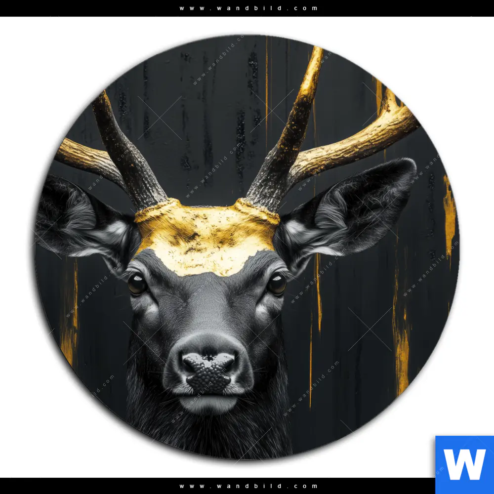 Aluminiumbild gebürstet | Edler Hirsch in Fokus | Rund