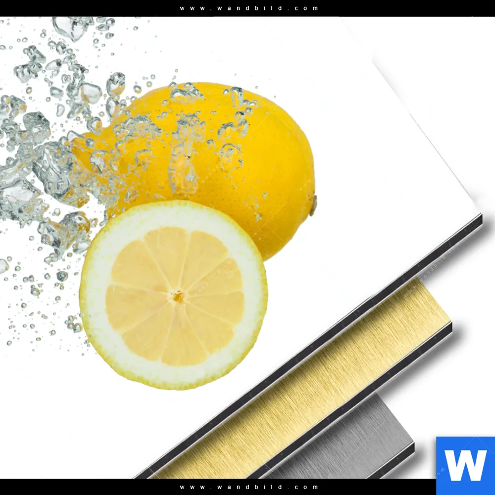 Aluminiumbild gebürstet | Ein Spritzer Zitrone | Quadrat