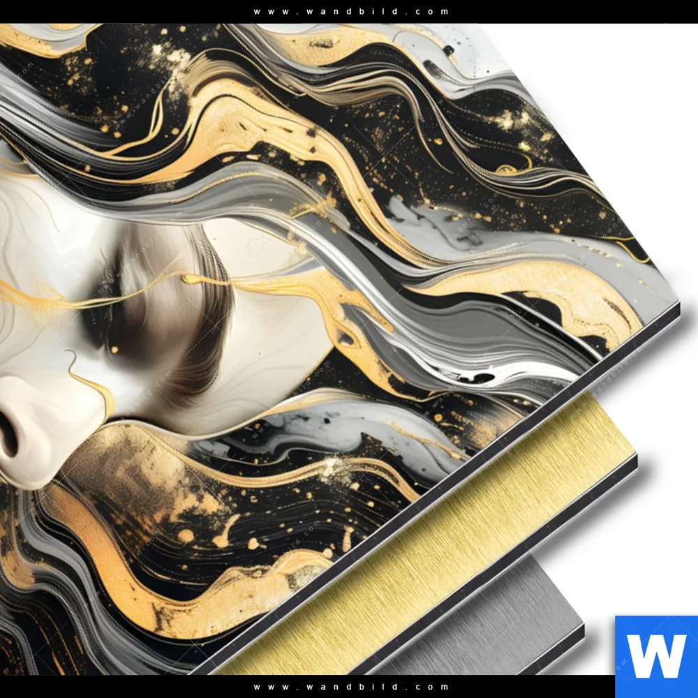 Aluminiumbild gebürstet | Elegantes gold-schwarzes Porträt | Hochformat