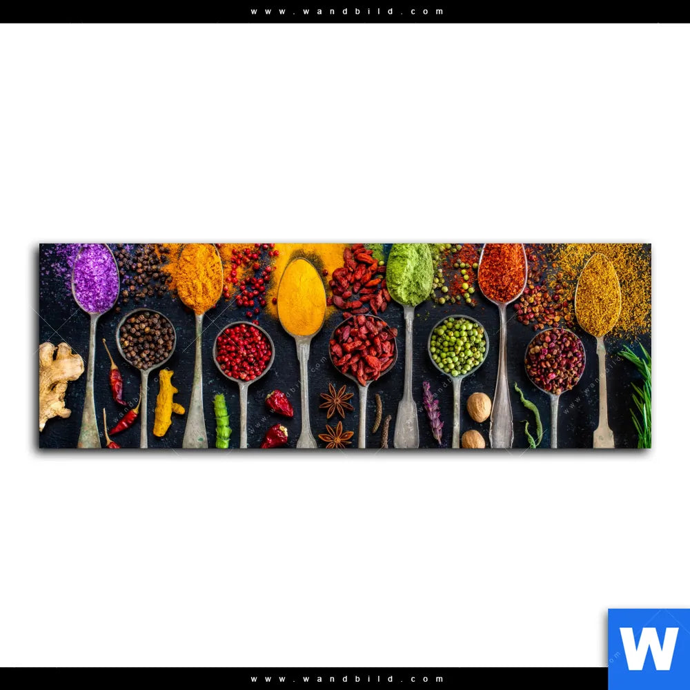 Aluminiumbild gebürstet | Exotische Gewürze auf Löffeln | Panorama