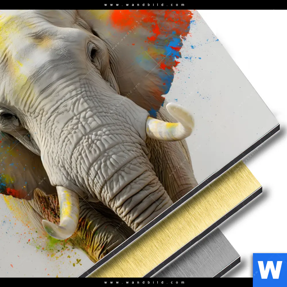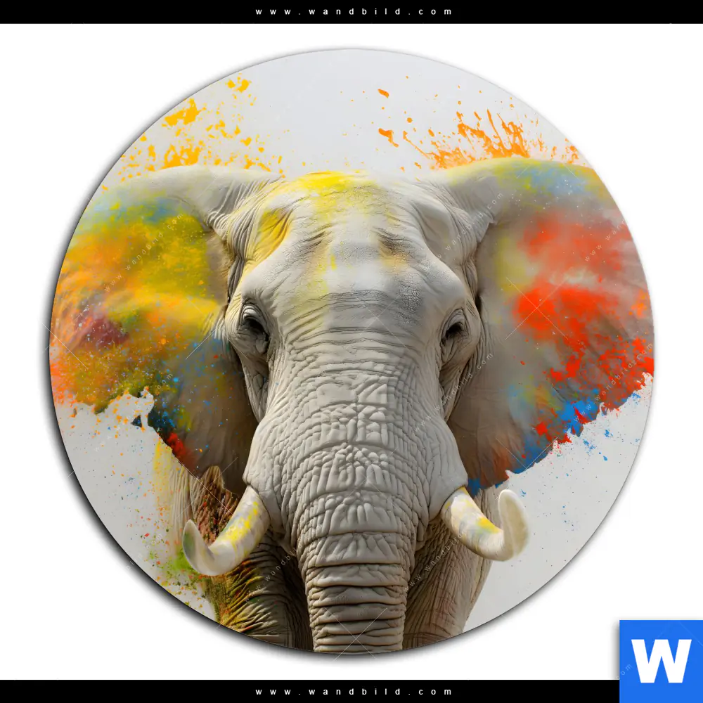Aluminiumbild gebürstet | Farbenexplosion mit Elefant | Rund