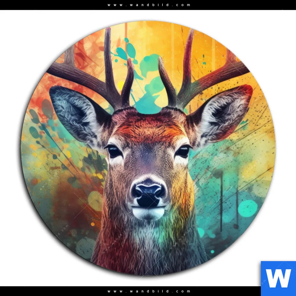 Aluminiumbild gebürstet | Farbenfrohes Hirschporträt | Rund