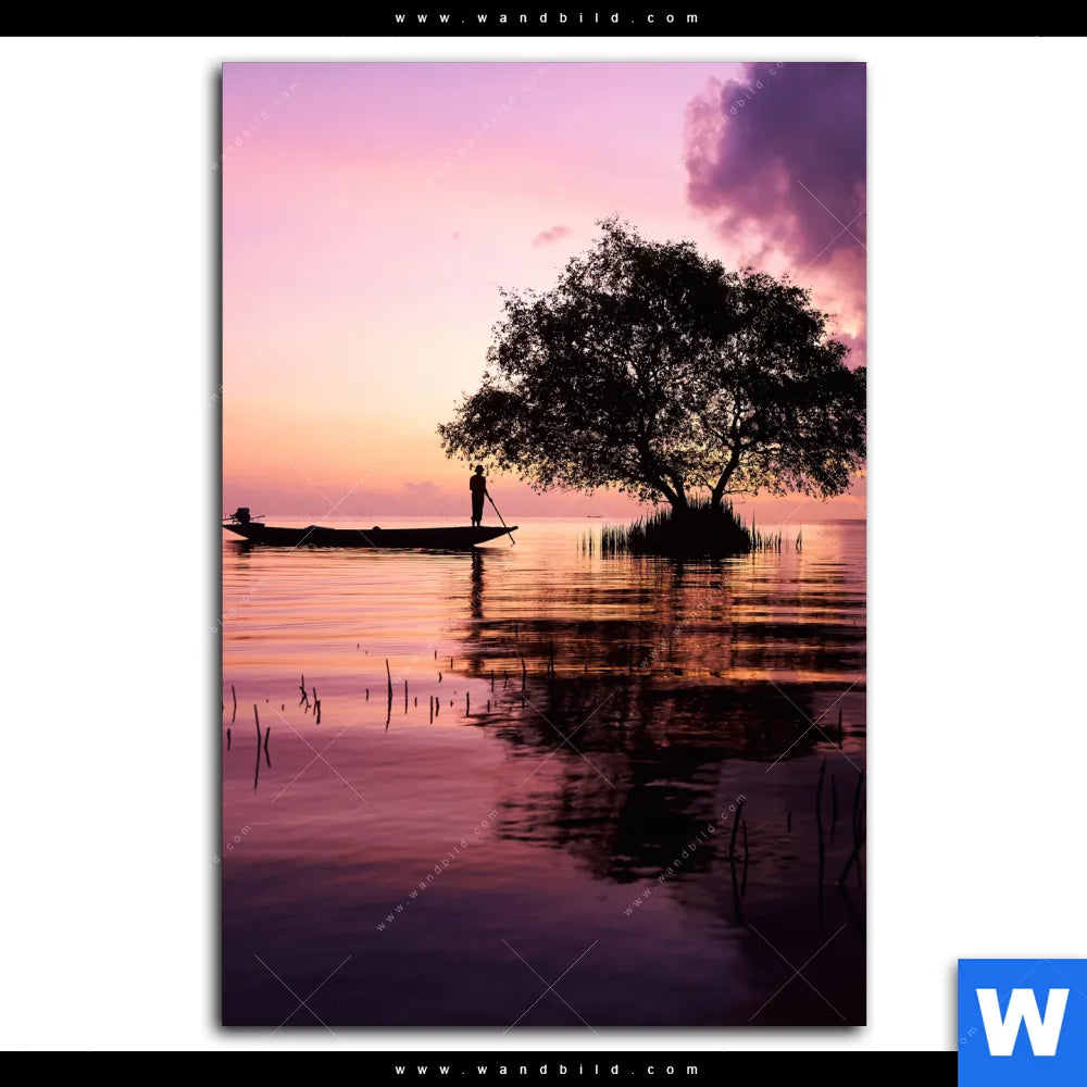 Aluminiumbild gebürstet | Fischer auf Boot Sonnenaufgang | Hochformat