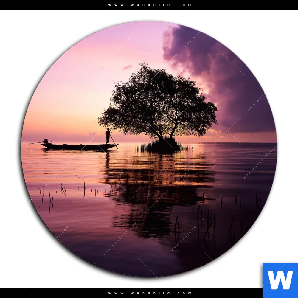 Aluminiumbild gebürstet | Fischer auf Boot Sonnenaufgang | Rund