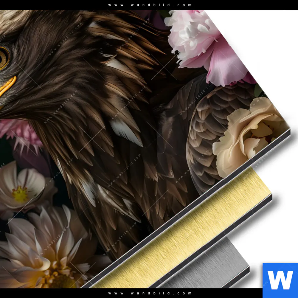 Aluminiumbild gebürstet | Florale Eleganz und Adlerblick | Quadrat
