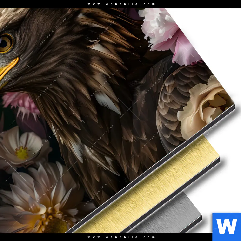 Aluminiumbild gebürstet | Florale Eleganz und Adlerblick | Rund