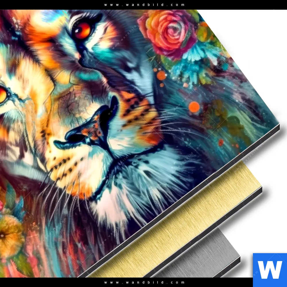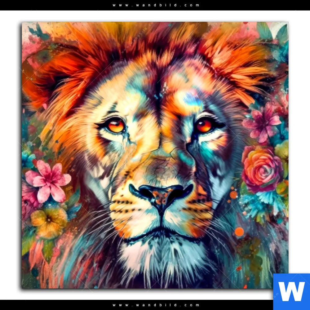 Aluminiumbild gebürstet | Floraler Löwe | Quadrat