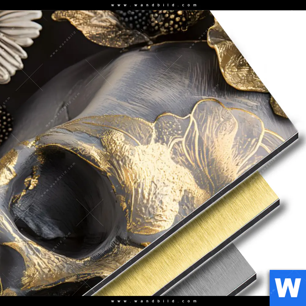 Aluminiumbild gebürstet | Floraler Totenschädel | Hochformat