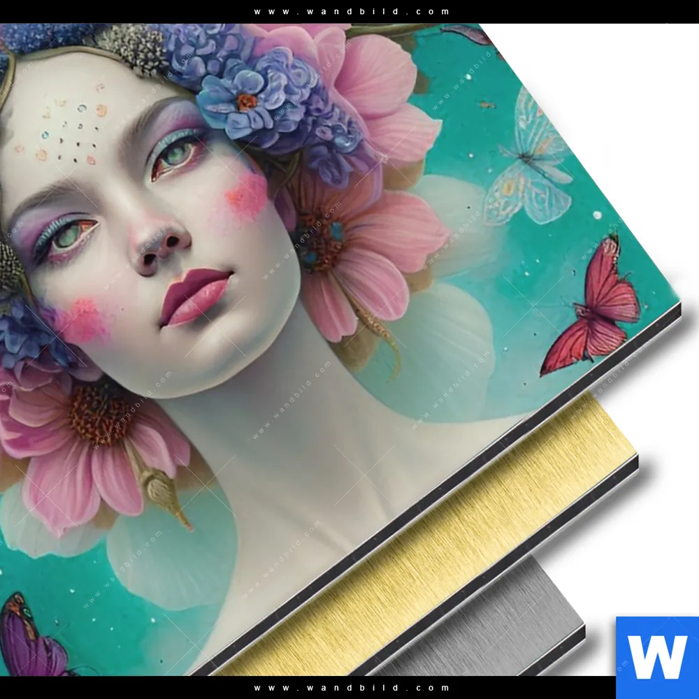 Porträts - Menschen, Blumen - Botanik Aluminiumbild mit metallischem Effekt inkl. vormontiertem Rückrahmen