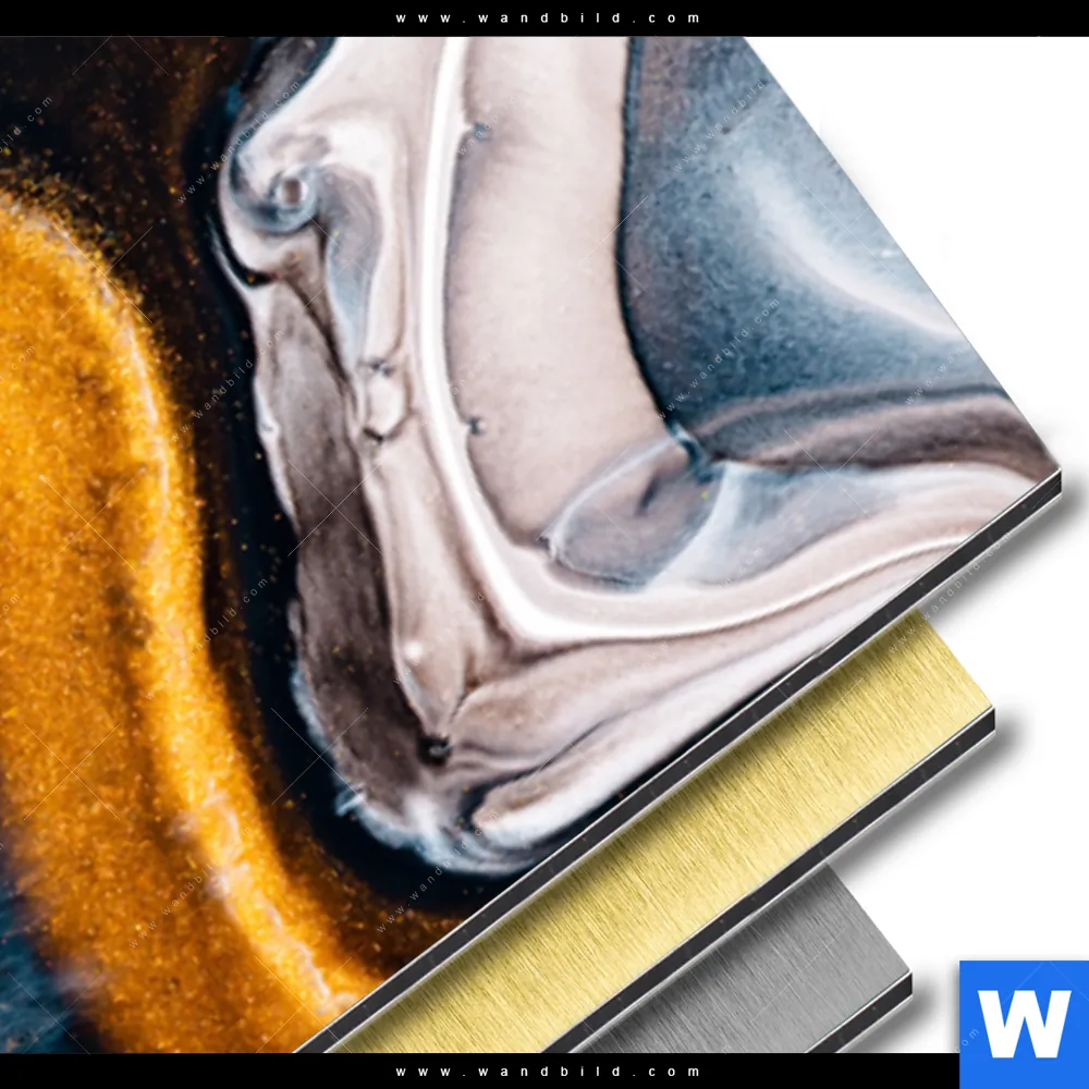 Aluminiumbild gebürstet | Fluid Art Goldrausch | Schmal